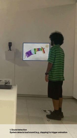 The project required protecting the authenticity of each child’s drawing while integrating animation and technology that still felt true to their story. A major challenge was ensuring immediate, intuitive interaction—especially since children at this age rely more on behavior than words to express satisfaction. Technical obstacles included calibrating sound sensitivity, refining webcam gesture detection, and building touch-trigger systems that worked across different drawings. Observing children’s reactions revealed the importance of fast activation, leading to continuous adjustments in coding, timing, and visual transitions. Balancing emotional accuracy, responsiveness, and accessibility became the core design problem, ultimately shaping an installation that centered the child’s voice at every step.